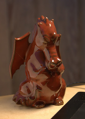 My father gave me this little guy. He was handmade in Bangor, Wales, in 1980. Sadly his right wing broke during the last housemove, but I glued it back on. He ususally sits on top of a chest of drawers in our bedroom, but I brought him downstairs today, dusted him off and took his portrait. Its one of a few little things that remind me of my Dad who died from cancer in 1984. The alternative shot for today was more snow and ice. 'nough said.